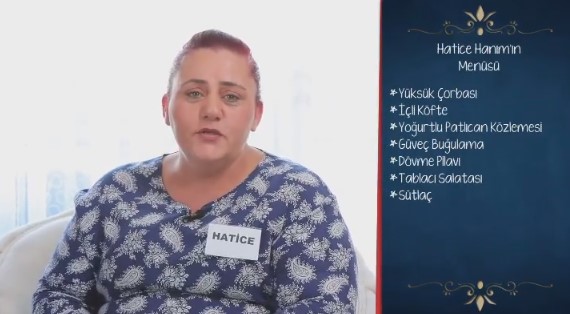 Haftanın 4. gün yarışmacısı Hatice Altuntaş. 15 bin lirayı kazanmak için hamaratlığına güvenen yarışmacı rakiplerine yemeklerini, Kadir Ezildi'ye temizliğini beğendirebilcek mi?